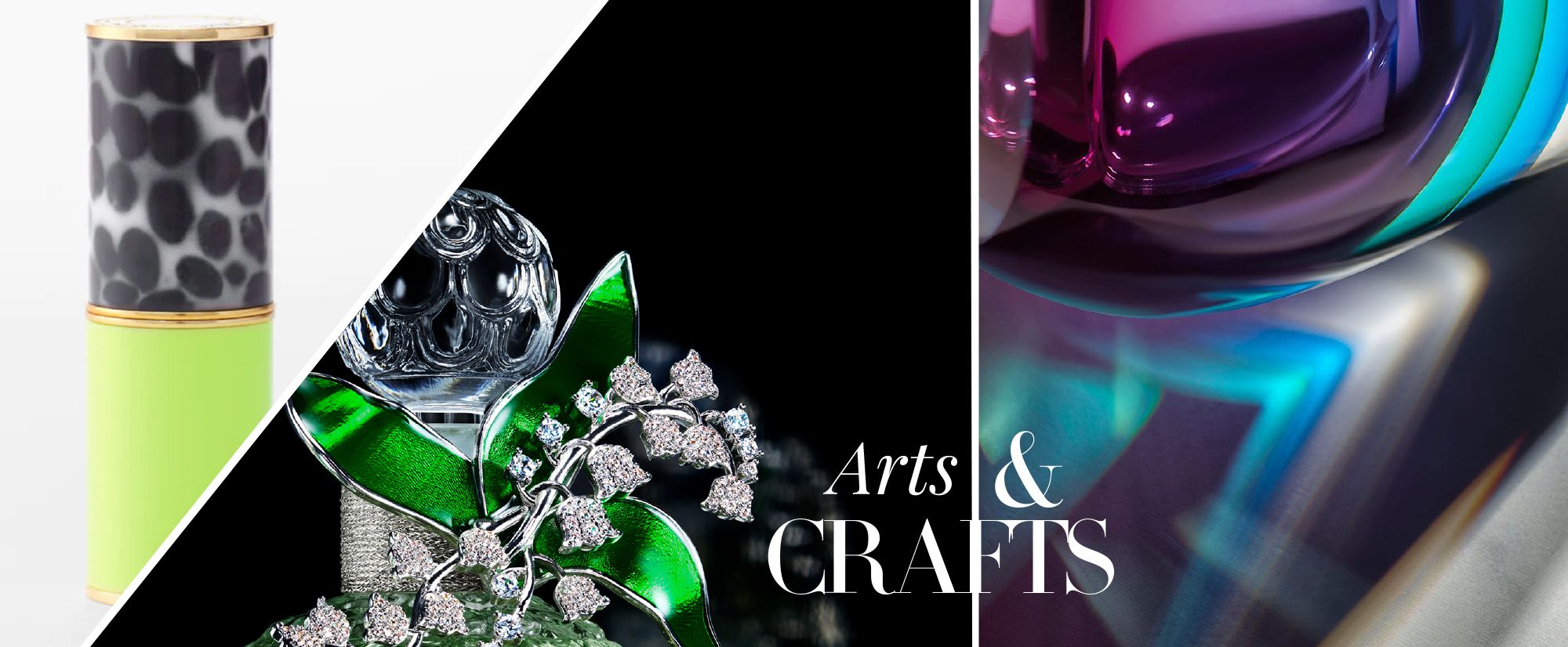 The lipsticks are decorated with various effects depending: a malachite print combined with a black and red PU coating, for example, or a blue and white porcelain print base juxtaposed with an orange cap